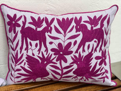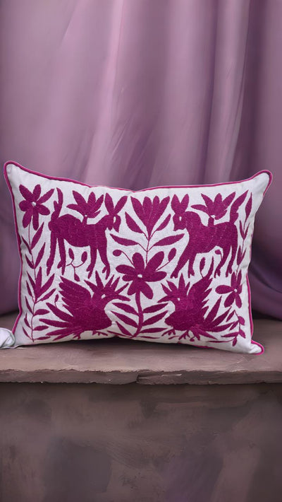 Cojín Otomí Lumbar Bordado Flora y Fauna