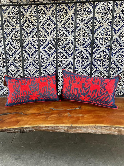 Cojín Doble Lumbar Otomí Bordado Flora y Fauna