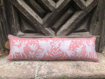 Cojín Doble Lumbar Otomí Bordado Flora y Fauna