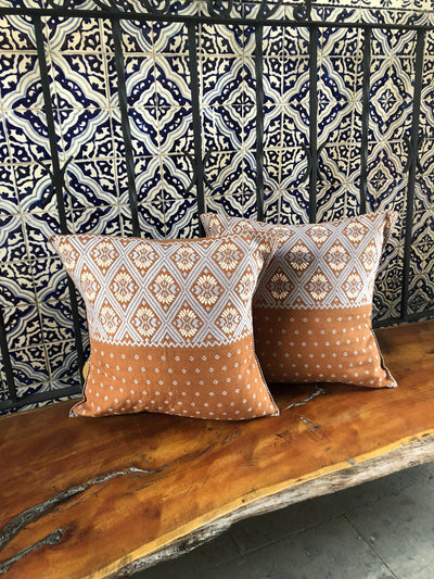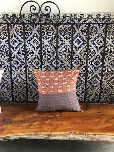 Cojín Telar de Cintura Brocado Cargadores del MundoAzul/Fiusha