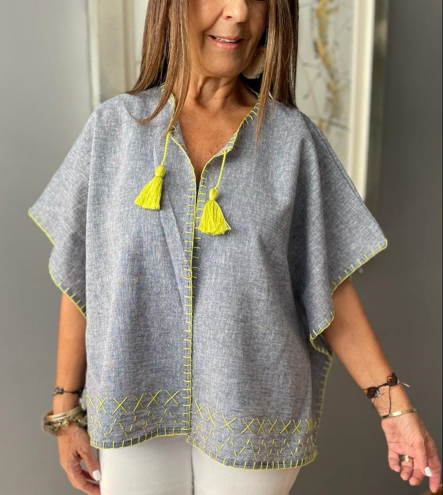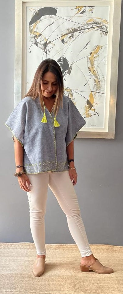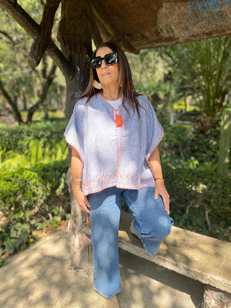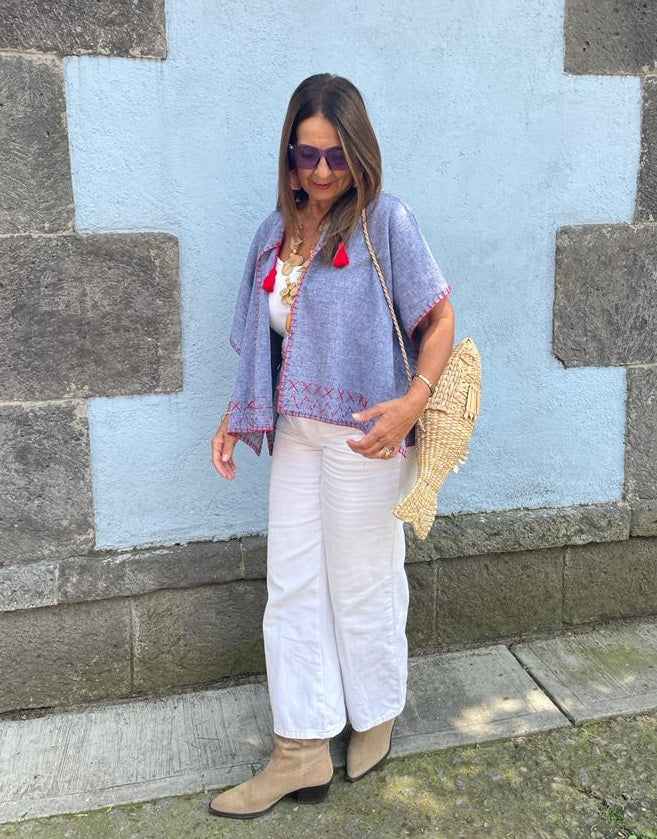 Saco Corto Lino Mezclilla Bordado